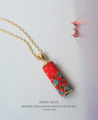 Modern Peranakan capsule pendant necklace + bangle gift set vermilion